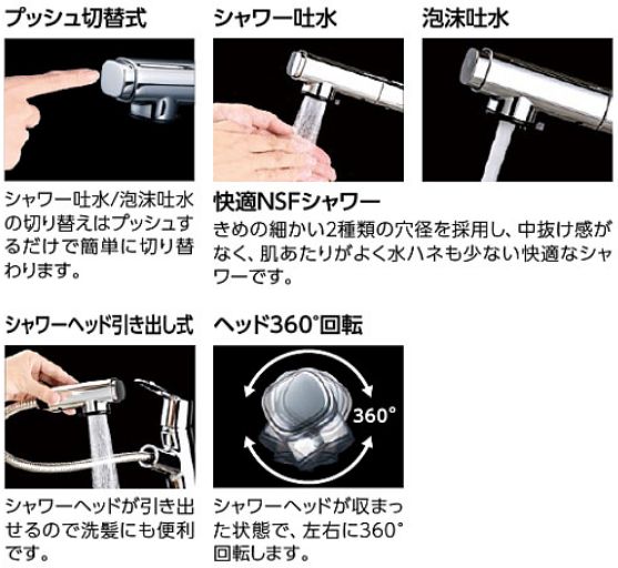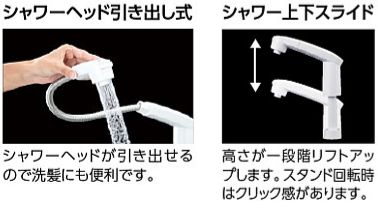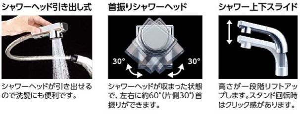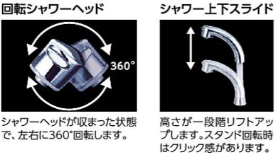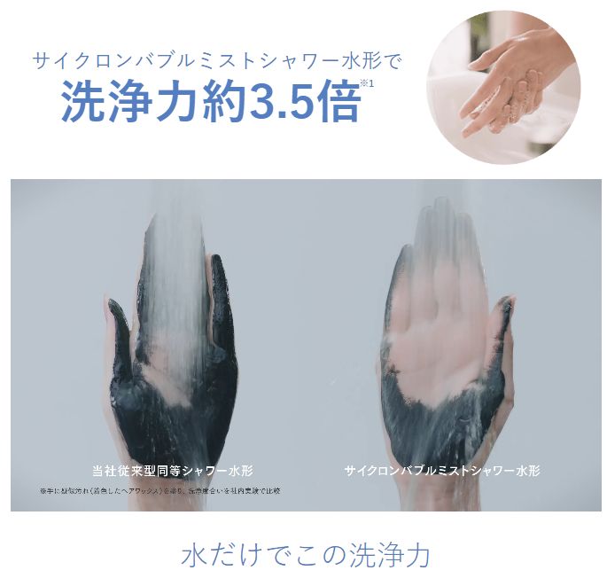 サイクロンバブルミストシャワー 女性に人気のオシャレ感 左右に蛇口が動くのも特徴